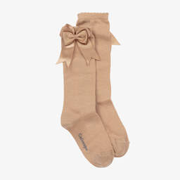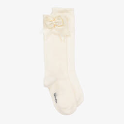 From traditional Spanish designer, Carlomagno these pretty navy blue knee-high socks for girls are made from a soft cotton blend. They have a lovely satin ribbon at the side and an elasticated top for a comfortable fit.