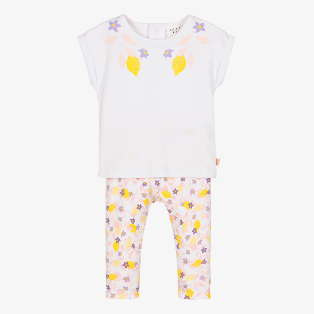 Girls White Lemon & Flower Leggings Set