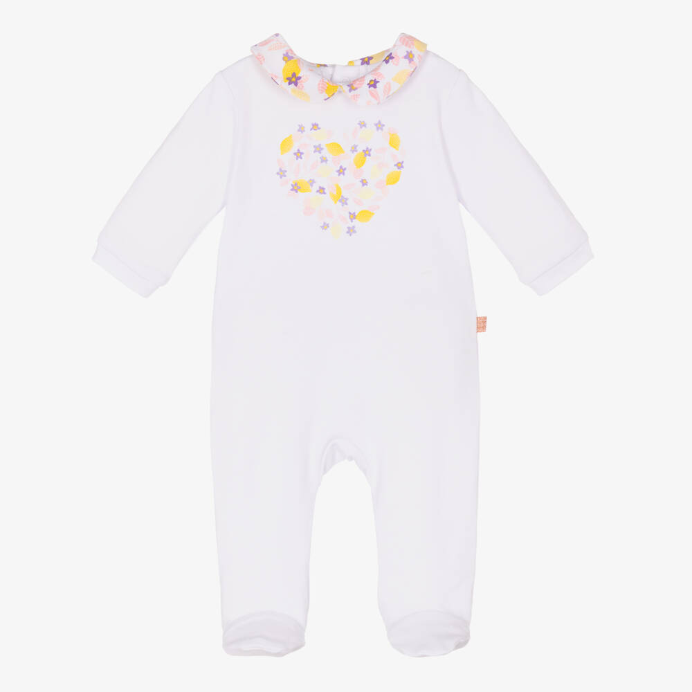 Girls White Lemon Heart Cotton Babygrow