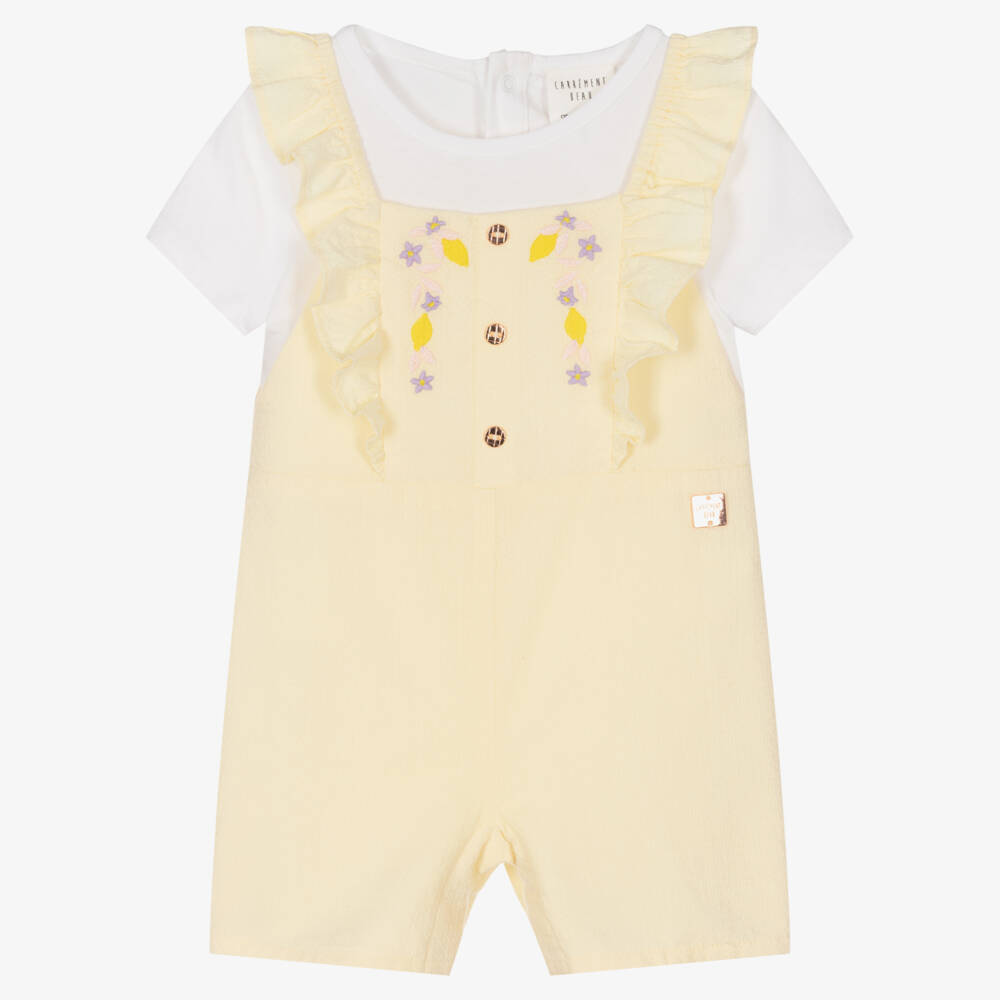 Girls Yellow Lemon & Flower Dungaree Set