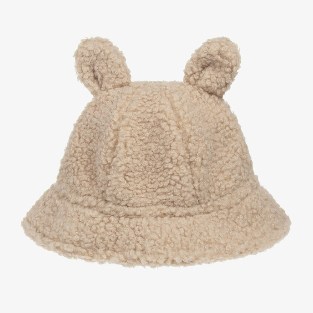 A lovely beige bucket hat for girls by Catya, made in soft sherpa fleece. Stylish and cosy, it is designed with little 3D ears on the top for a fun touch.