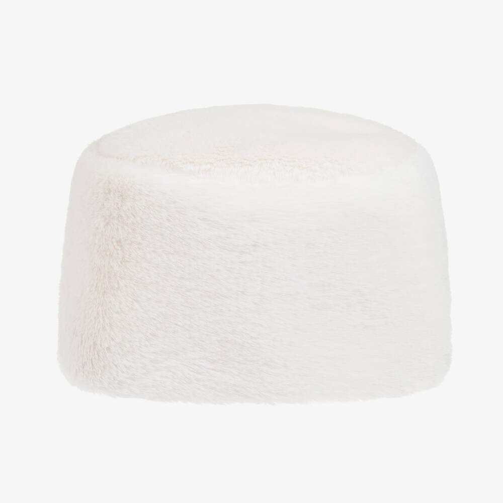 Gorgeous ivory faux fur hat for girls, beautifully made in Italy by Catya. Luxuriously soft and cosy, it has a comfortable fleece lining and a chic pillbox design.