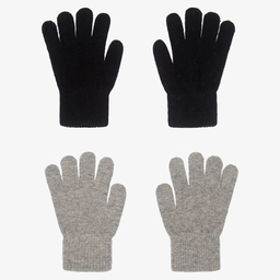 Pack of two, grey and black gloves for boys and girls by Danish brand CeLaVi. Knitted in a super soft wool blend, they will keep little hands warm and cosy.