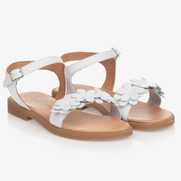Exclusive to Childrensalon, a pair of navy blue flower sandals for girls by Children's Classics, made from soft leather. They have a buckle fastening ankle strap, comfortable leather lining and a non-slip rubber sole.