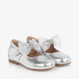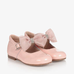 Girls smart ivory patent leather shoes from Children's Classics, exclusive to Childrensalon. Lined in soft leather, this classic Mary Jane style has a comfortable padded leather insole. They have lovely punch hole scalloped detail on the front and fasten with a buckle stap that comes with a detachable organza and diamanté bow.