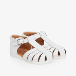 Exclusive to Childrensalon, a pair of pale pink flower sandals for girls by Children's Classics, made from soft leather. They have a buckle fastening ankle strap, comfortable leather lining and a non-slip rubber sole.