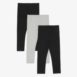 Pack of three pale blue, red and grey full length leggings for baby girls and boys by Childrensalon Essentials, patterned with bears or stripes. They are made in beautifully soft, organic cotton jersey for comfort and are presented in fully biodegradable packaging.