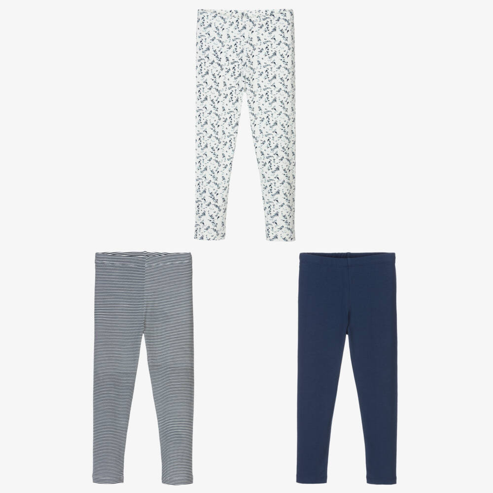 Girls Blue Organic Cotton Leggings (3 Pack)