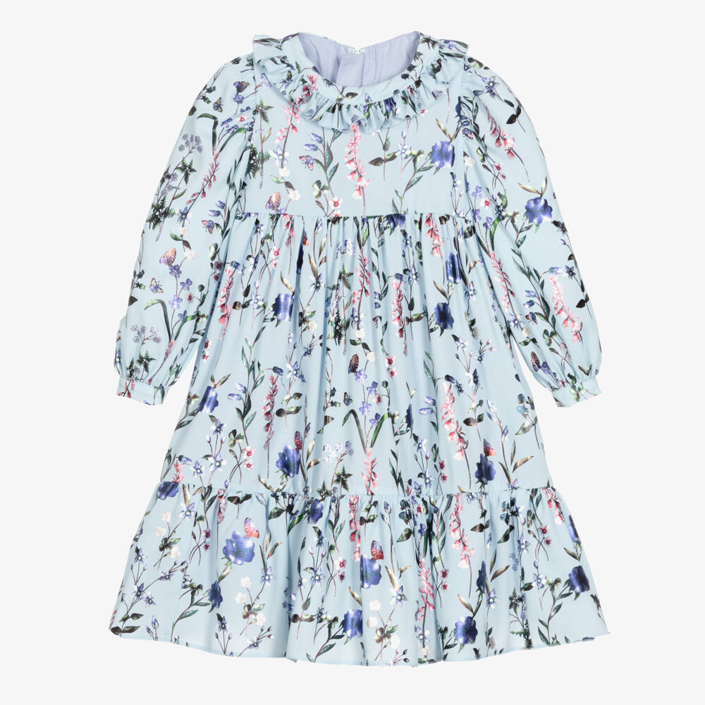 Girls Blue Floral Crêpe Dress