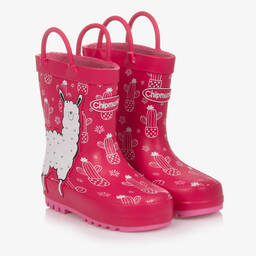 Aqua green and blue rain boots for girls by Chipmunks, made in smooth, flexible rubber. With a lilac purple fleece lining for cosiness, they have a lovely mermaid pattern and friendly character print, whose 3D tail extends on the back of the boots. There are useful handles on smaller sizes to help pull them on easily.
