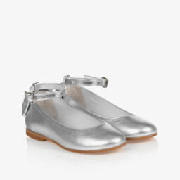 Shiny silver bar shoes for girls by Chipmunks, made in beautifully soft leather. Decorated with classic flower punch detailing on the toes, these cute shoes have a comfortable faux leather insole and an easy-to-use buckle fastening strap across the foot. The beige, non-slip rubber outer sole provides excellent grip.