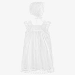 Pink cotton dress and leggings set from luxury French fashion house Chloé, offering a charming look for baby girls. The soft twill dress features delicate ruffles and beautiful white embroidered detail. It has a lightweight lining and fastens with a neat concealed zip on the back. The white jersey leggings provide comfort and ease of movement, making the set ideal for playtime or special occasions. Both pieces are embroidered with the brand's handwritten logo for a discreet designer finish.