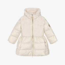 Mini-me blue jeans for girls by luxury label Chloé, made in soft denim with a hint of stretch. For a chic silhouette, they have a subtle flare at the ankle in a darker blue shade with a frayed hem. They are styled with five pockets, have contrast stitch detailing and an adjustable waist for a comfortable fit.