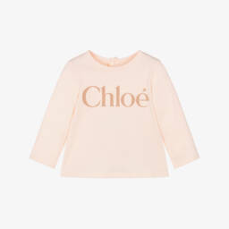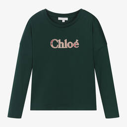 Lovely green long-sleeved top for girls by Chloé, the luxury French designer. The label's signature logo is appliquéd on the front, printed with a pretty watercolour spiral print in pastel hues. It is made in soft organic cotton jersey, making it ideal for casual wear.