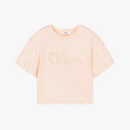 Girls grey marl cotton T-shirt by luxury French brand Chloé, with an eye-catching logo appliquéd on the front in ivory twill. Made in soft, comfortable jersey, it has a relaxed silhouette and is ideal for casual days.