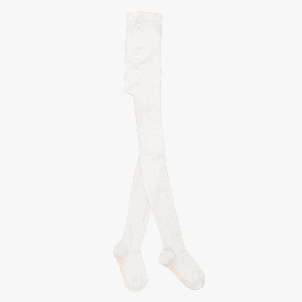 Lovely ivory tights for girls by luxury French brand Chloé. Beautifully soft and comfortable to wear, they are made in a stretchy cotton blend. The legs have pretty patterned detailing and the signature Chloé logo can be seen on the soles of the feet.