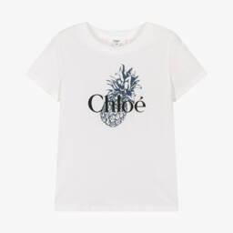 Inspired by the adult collection, this stylish ivory denim gilet for girls is by luxury brand Chloé. Woven in mid-weight organic cotton, it has scalloped detailing on the front and fastens with gold-tone branded poppers. A brown Chloé Paris jacron patch on the front adds a finishing designer touch.