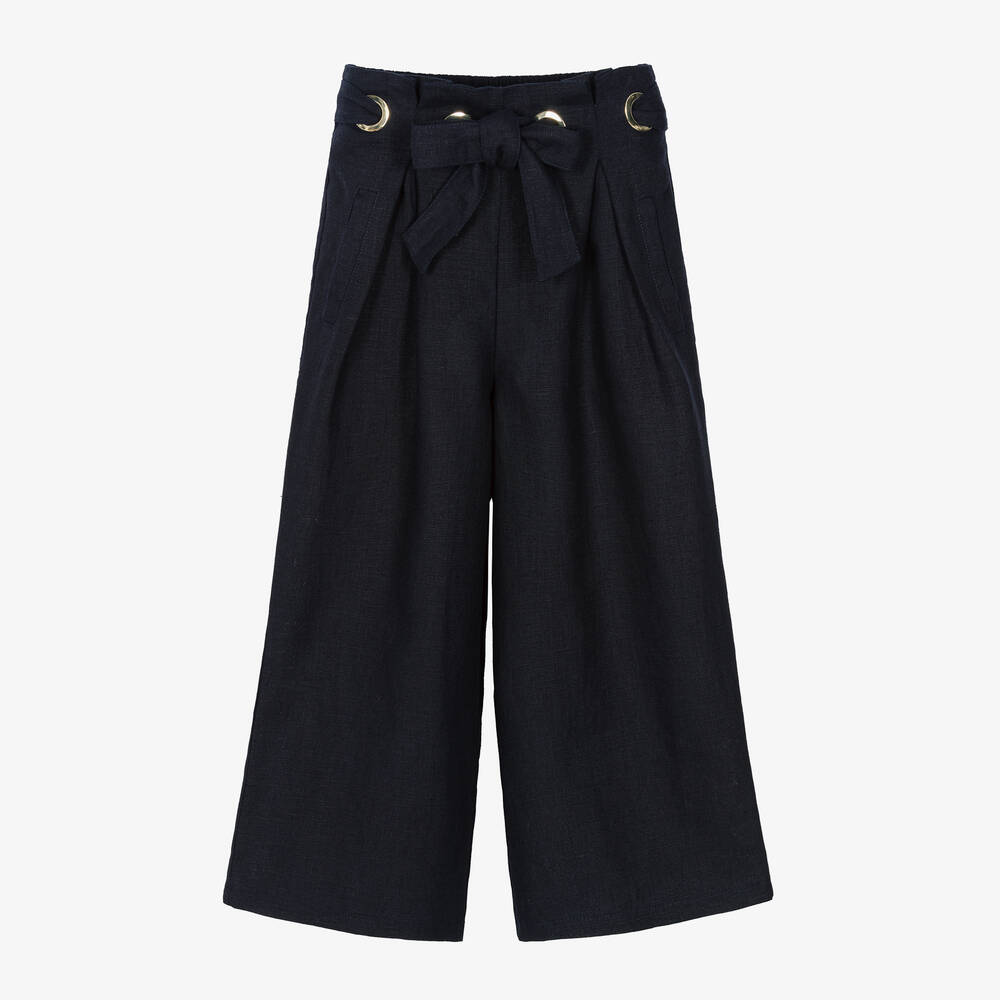 Girls Navy Blue Linen Trousers
