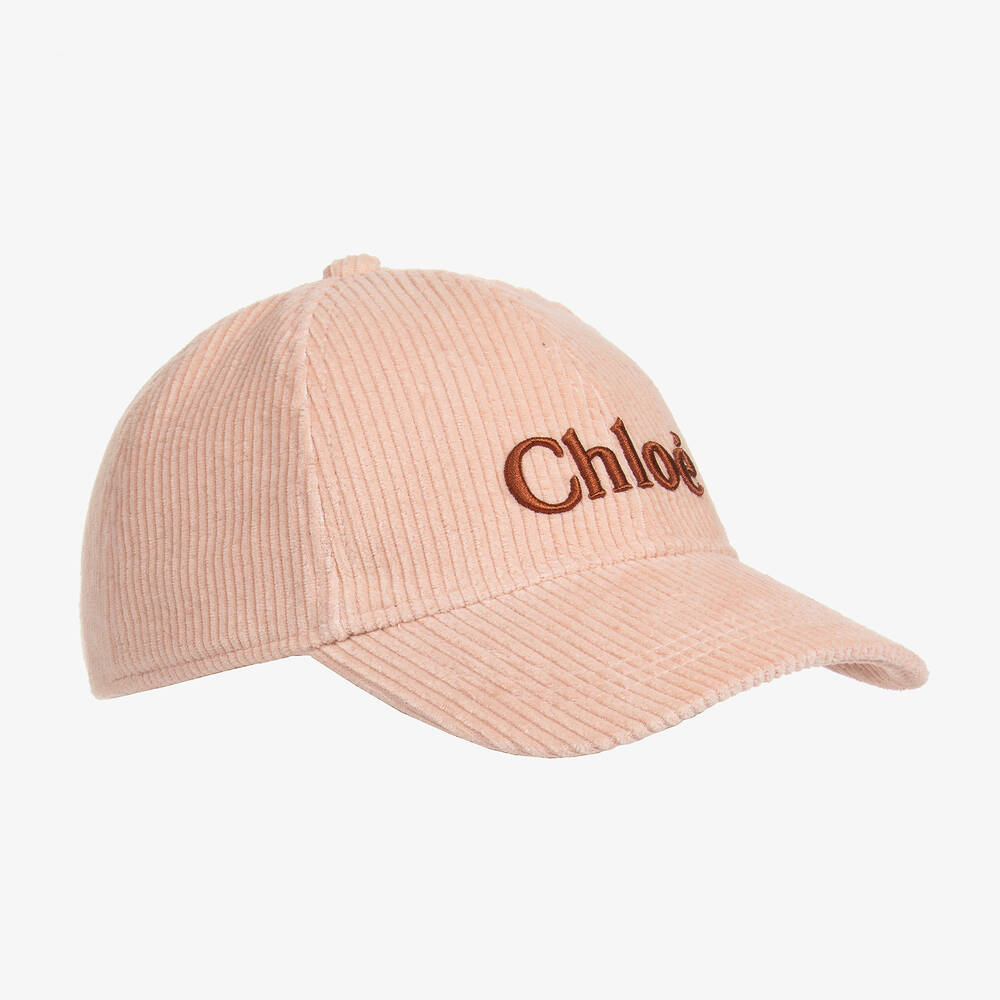 Stylish corduroy cap for girls by luxury French brand Chloé, in a lovely antique rose pink shade. Made with organic cotton, it has a partial lining and an adjustable velcro strap. The distinctive Chloé logo is embroidered on the front in contrasting brown thread.
