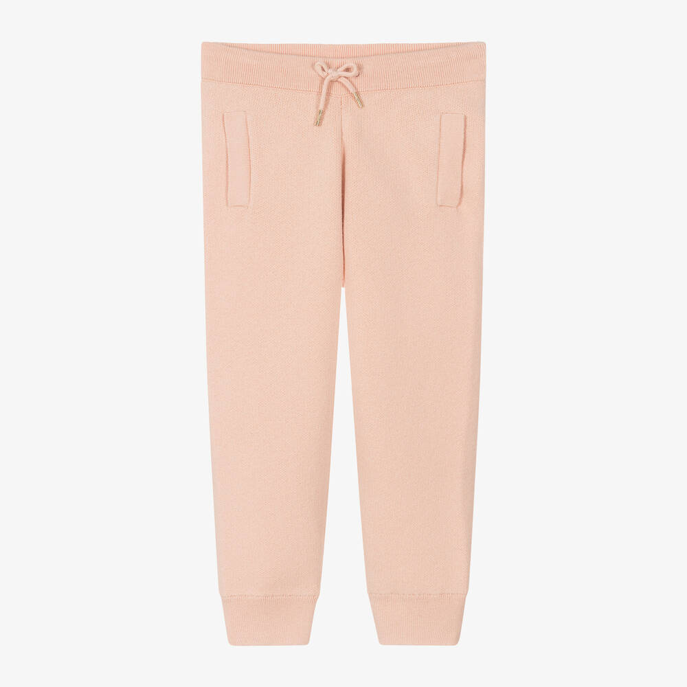 Casual yet stylish, these pale pink joggers for girls are by luxury French brand Chloé. Knitted in a beautifully soft blend of organic cotton and wool, they have useful front pockets and an elasticated drawstring waist for a comfortable fit. The back is trimmed with brown and beige stripes, discreetly signed with Chloé embroidery for a subtle designer touch.