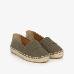 Lovely Mini-me espadrilles by luxury French designer Chloé, made in tan suede leather with an embossed logo on the ankle. There are scalloped straps across the toes, patterned with gold eyelets, and a scalloped velcro ankle strap. Lined in soft leather, they have a braided textile inner sole and a non-slip man-made outer sole.