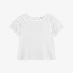 Inspired by the adult collection, an off-white organic cotton playsuit for girls by luxury French designer Chloé. Chic and stylish, it is embroidered in celestial stars with scalloped hems and a signature gold-tone Chloé logo charm. The ruffled neck and waistline are elasticated, while a delicate fixed bow decorates the front. It has a lightweight cotton voile lining, making it an elegant choice for warm-weather styling.