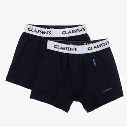 Pack of two navy blue boxer shorts for boys by Claesen's, made in soft cotton jersey. These comfortable boxers have the brand's logo on the waistband for added designer appeal.