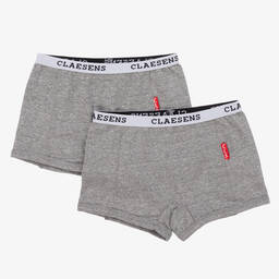 Pack of two grey boxer-style knickers for girls by Dutch brand Claesen's, made in soft and stretchy cotton jersey. Comfortable to wear, they have a logo-branded waistband and a branded tab on the front.