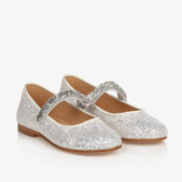 These gorgeous, glittery silver shoes for girls from Coeur by Childrensalon, will sparkle and shine at any celebration. Made in soft textile with a grosgrain trim, they have glittery gold toes, and fasten with a matching, adjustable velcro strap.
