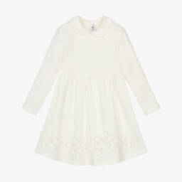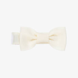 A charming ivory headband for baby girls by British brand, Cute Cute. Ideal for a feminine look, it has a smooth dotted organza bow decoration with a gorgeous diamanté flower embellishment in the centre for an added touch of sparkle. Comfortable to wear, the silky elasticated band slips easily onto the head.