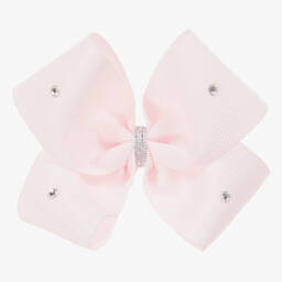 A pale pink grosgrain ribbon hair clip by Cute Cute. Lovingly handmade, this pretty hair accessory is studded with sparkling diamanté to add a touch of glamour to an outfit. It secures to the hair with a metal clip.