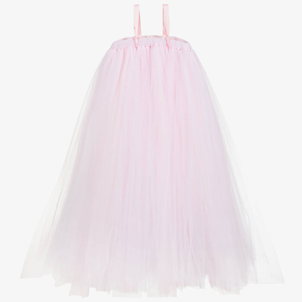 A beautiful dress in shades of white and pink by Dainty Dizzy, made with varying lengths of individual hand-looped tulle. Lined in smooth silk, the dress can also be worn as a skirt by removing the straps.