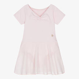 Pretty lilac purple leotard dress for girls by dancewear brand, Danskin. Made using the designer's super soft four-way stretch fabric for free movement, the leotard body has a ruched centre and short sleeves. The sheer skirt is attached to the breathable, fitted leotard and is beautifully floaty for ballet and dance classes. Rose gold logo prints complete the style with a branded touch.