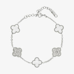 Girls delicate gold tone bracelet by David Charles, with a stylish four-leaf clover design. It has alternating mother-of-pearl and diamanté-set clovers, linked together with an adjustable chain. It fastens with a secure lobster clasp.