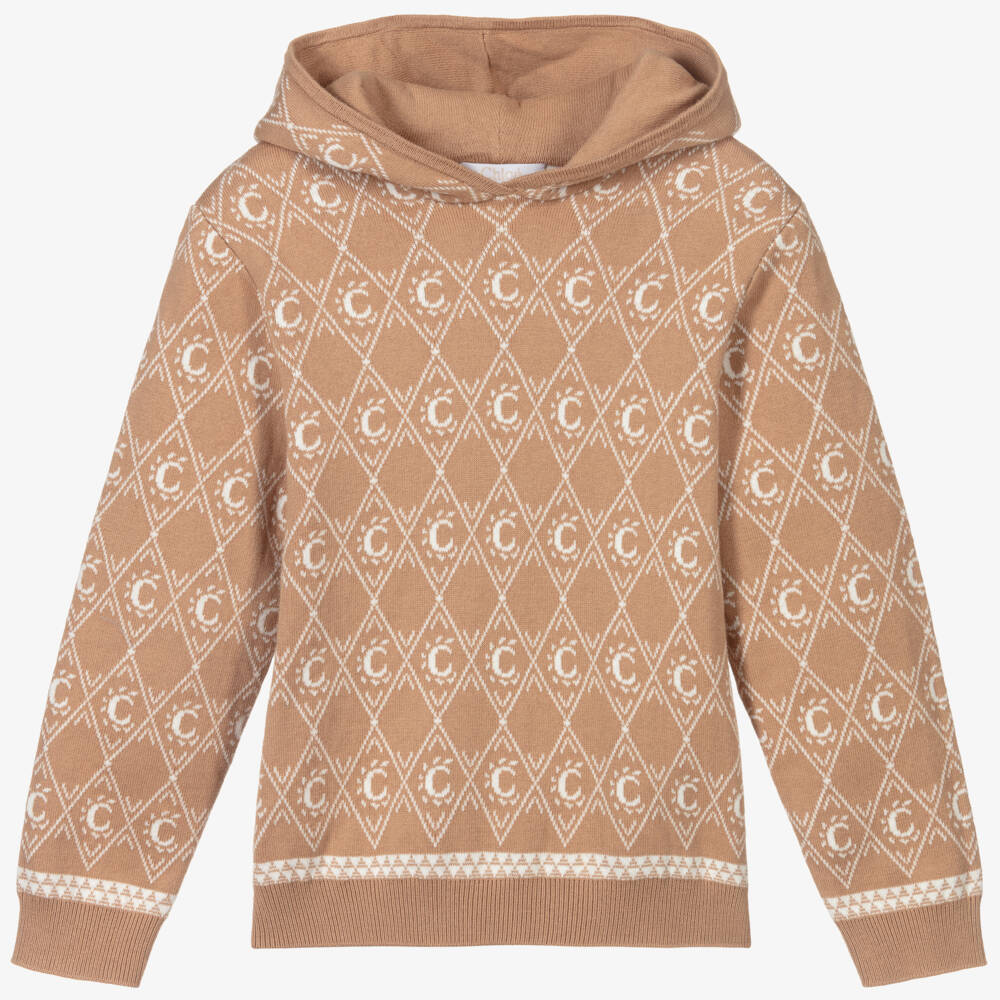Directly inspired by the adult collection, this teen girls beige knitted hoodie by luxury brand Chloé, with the iconic jacquard 'C' logo design. Soft and mid-weight, this effortless loungewear piece has beige ribbed trims.