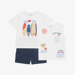 A practical option on cold days, this navy blue snood for teen boys is from Mayoral. It has a rubberised 'Happy Mood' logo badge on the front. In a super soft knit with a polar fleece lining, this snood is great for layering.