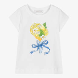 Featuring a pretty black and beige floral butterfly design which subtly incorporates the designer's name, this ivory cotton T-shirt for teen girls is by Monnalisa. Super comfortable to wear, it is made in soft and stretchy jersey.