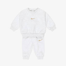 A blue tracksuit for younger boys by Nike, made from a soft and lightweight cotton jersey blend. The hoodie is patterned with the brand's signature Swoosh logo for a casual, contemporary look. A pair of joggers with a matching embroidered motif complete this ready-to-wear outfit.
