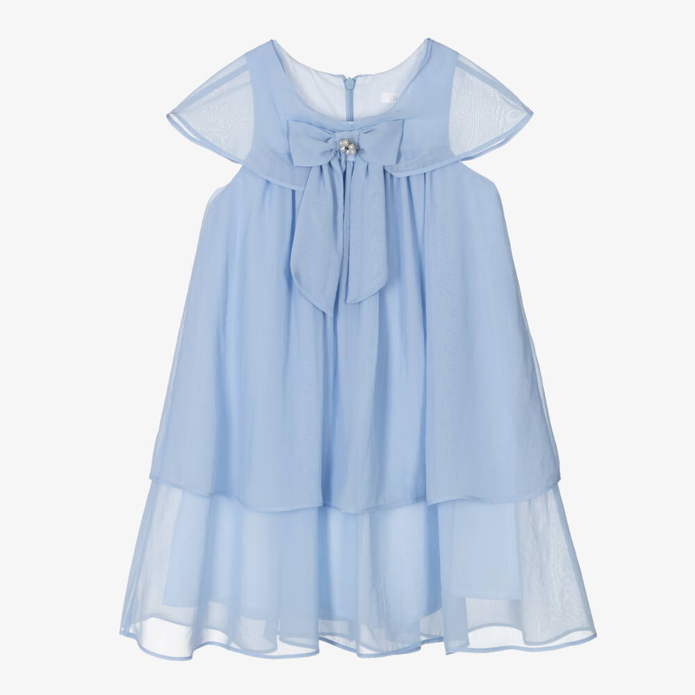 Girls Blue Bow Chiffon Dress