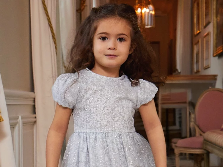 Atelier Choux ParisGirls White Carousel Print Cotton Dress