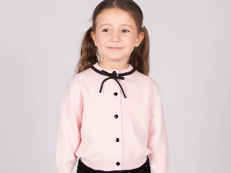 Beau KiDGirls Pink Knitted Dress & Cardigan Set with Black Bow