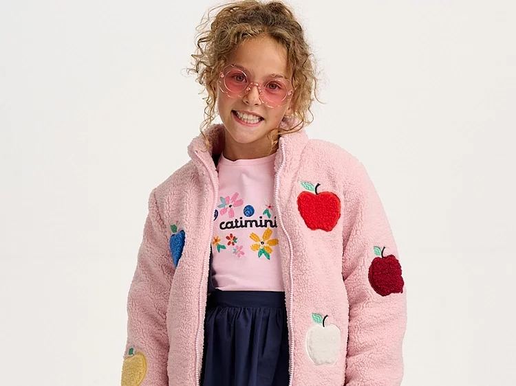 CatiminiGirls Pink Sherpa Fleece Apple Jacket