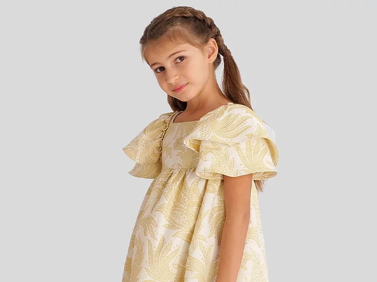 EtroGirls Ivory & Yellow Jacquard Paisley Dress