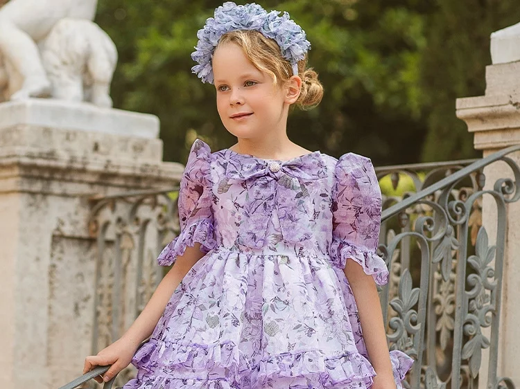 New SeasonIrpaGirls Lilac Purple Chiffon Dress with Floral Print