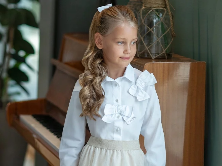 Lapin HouseGirls Ivory Cotton Blouse with Lace Trim