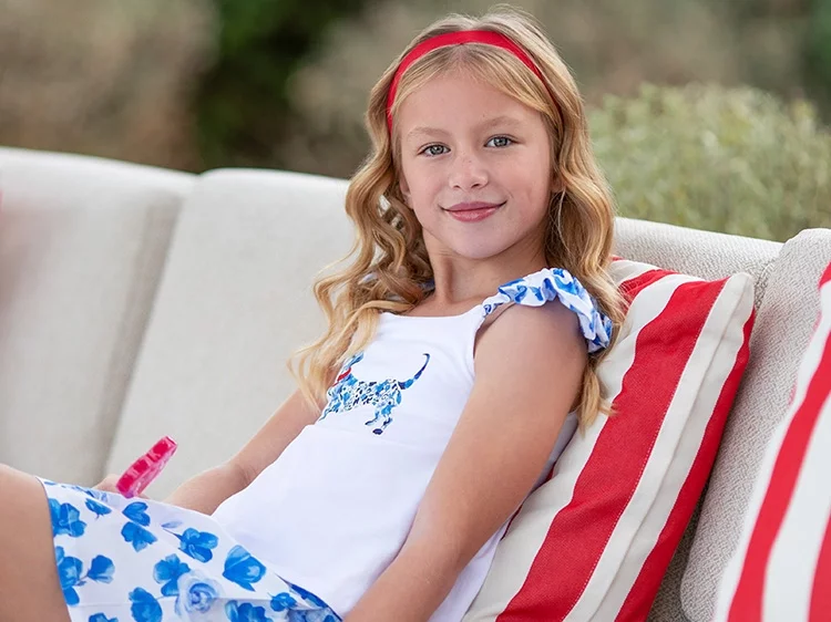 New SeasonLapin HouseGirls White & Blue Floral Cotton Shorts Set with Dog Print