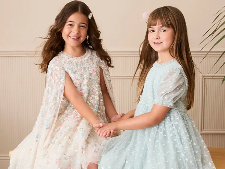 Picture this: a flurry of delicate lace, layers of tulle and sparkly sequins. Meet Needle & Thread, the occasionwear brand guaranteed to make little girls feel like the main character. Inspired by antique prints and classic English country gardens, this collection of timeless designs was made for her starring role.