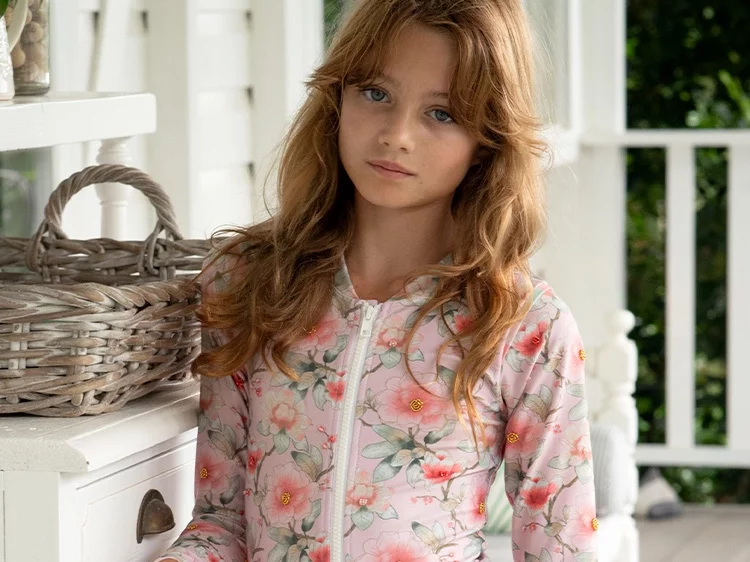 New SeasonOlga ValentineGirls Pink Floral Print Long Sleeve Swimsuit (UPF50+)