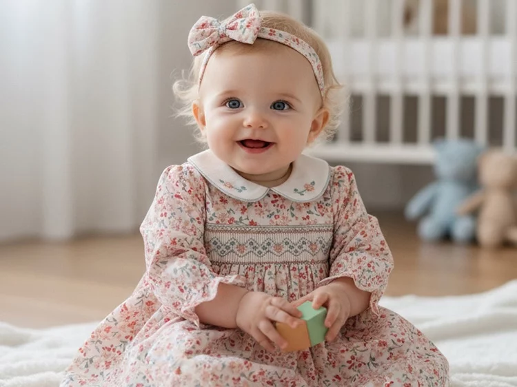 Pretty OriginalsGirls Ivory Floral Smocked Dress Set