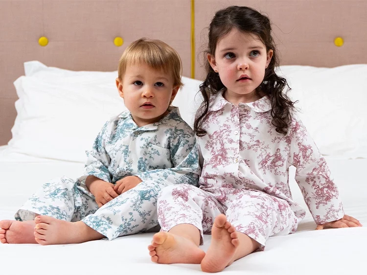 Pureté Du... BébéGirls Ivory & Pink Cotton Toile De Jouy Pyjamas